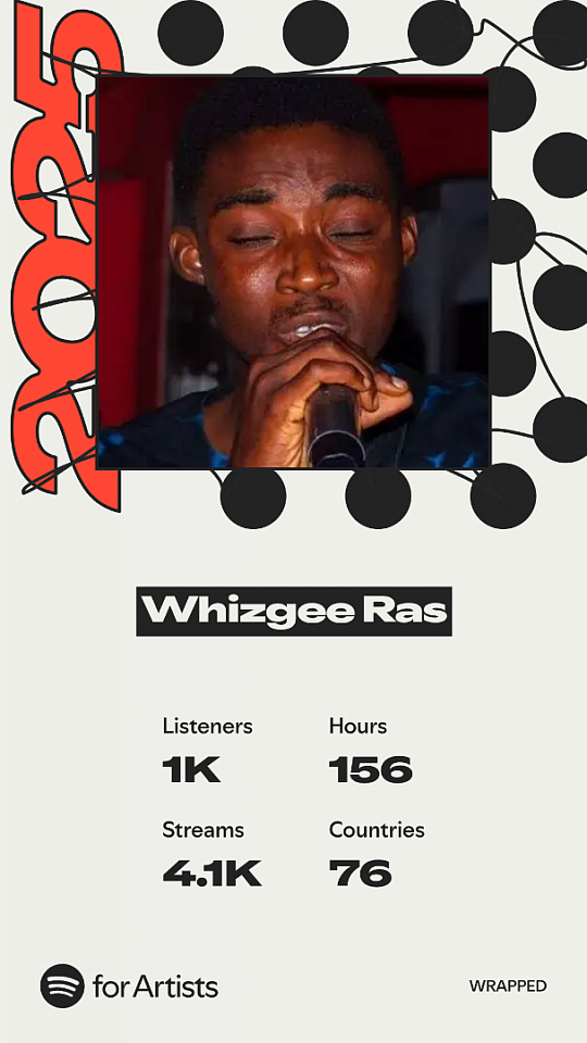 In 2025 Whizgee Ras streams on Spotify increase 10 times compared to 2024