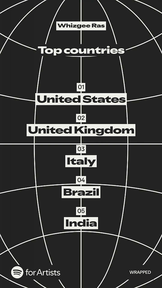 Top countries Whizgee Ras music traveled to 2025